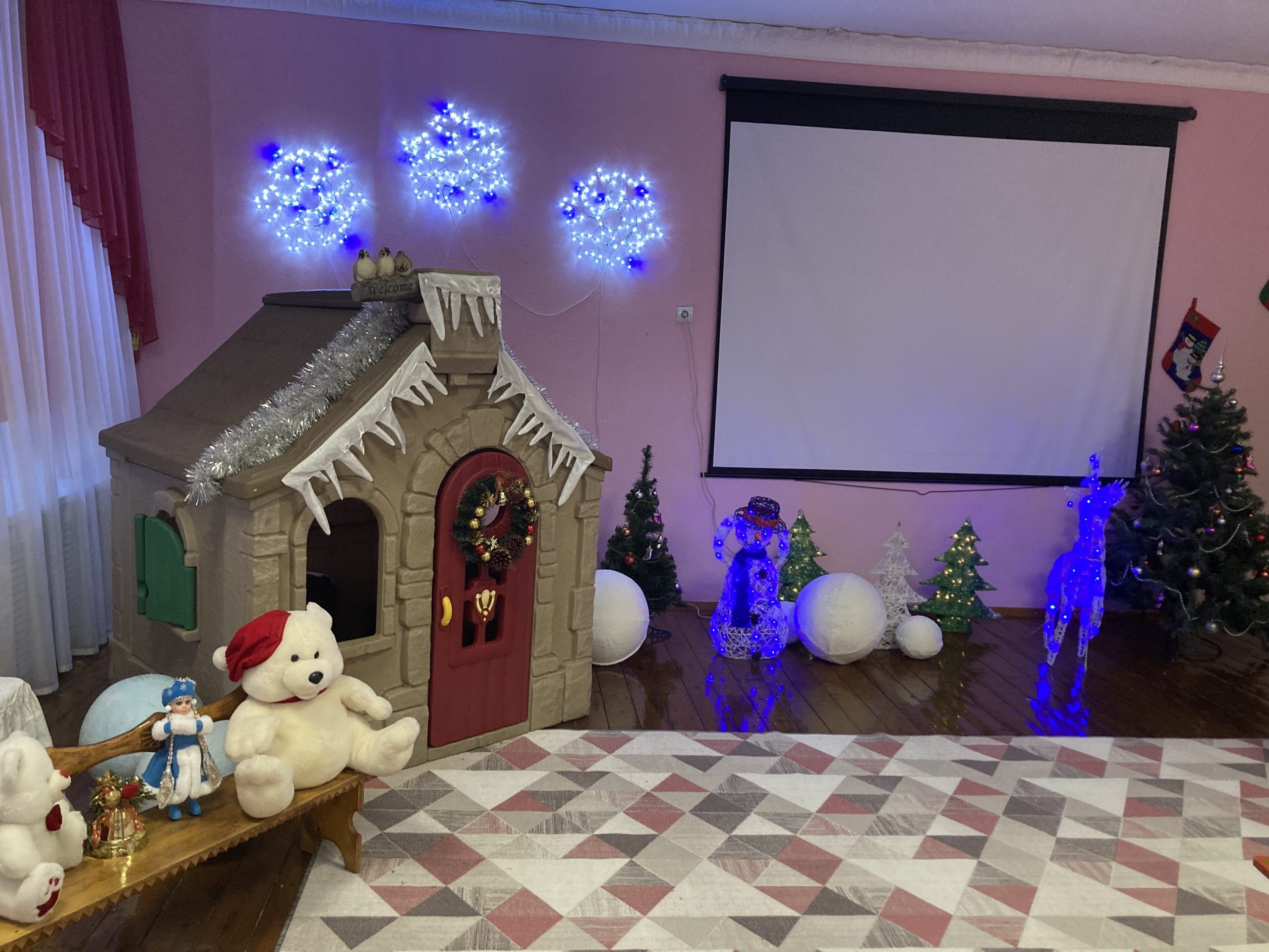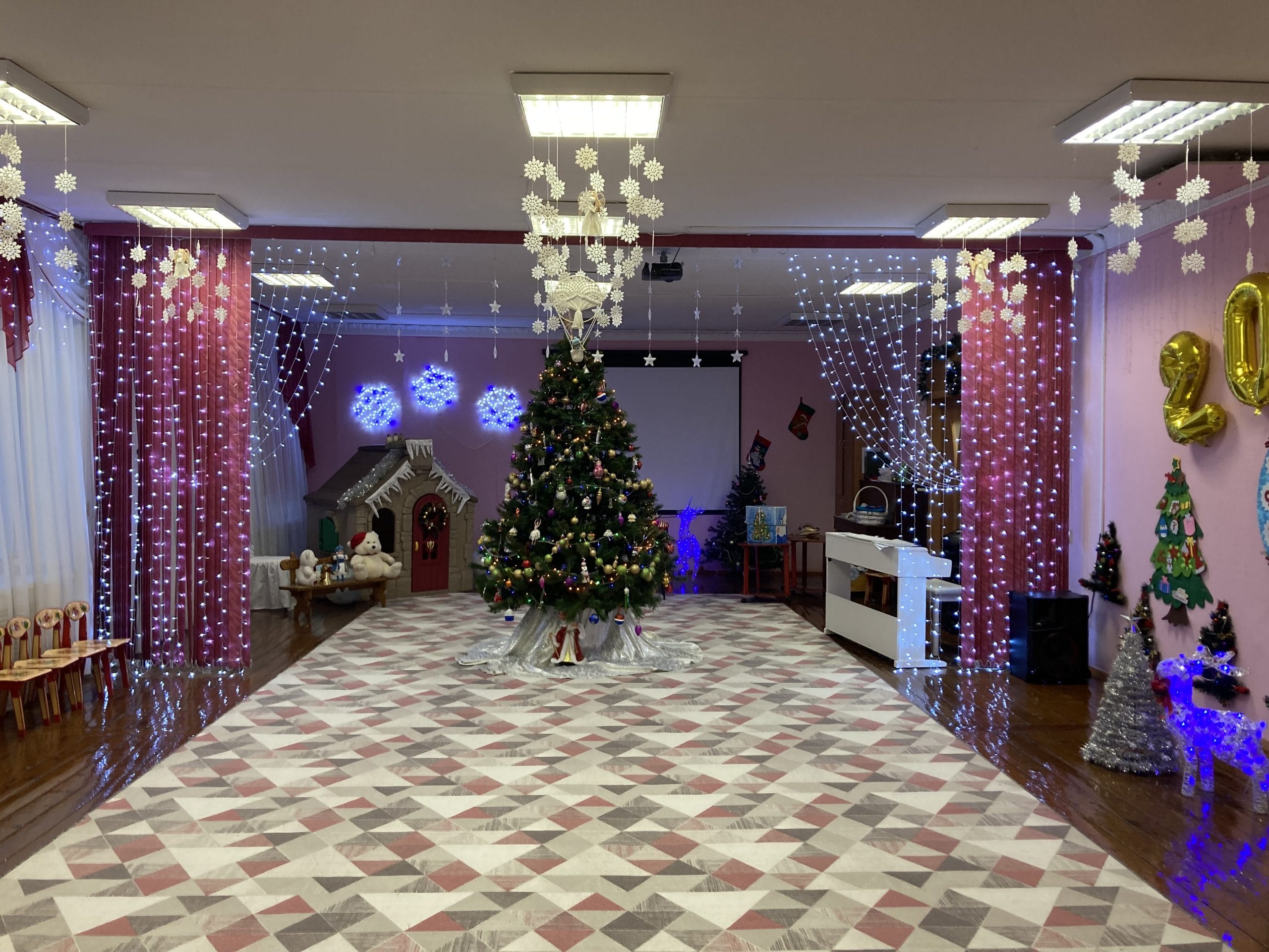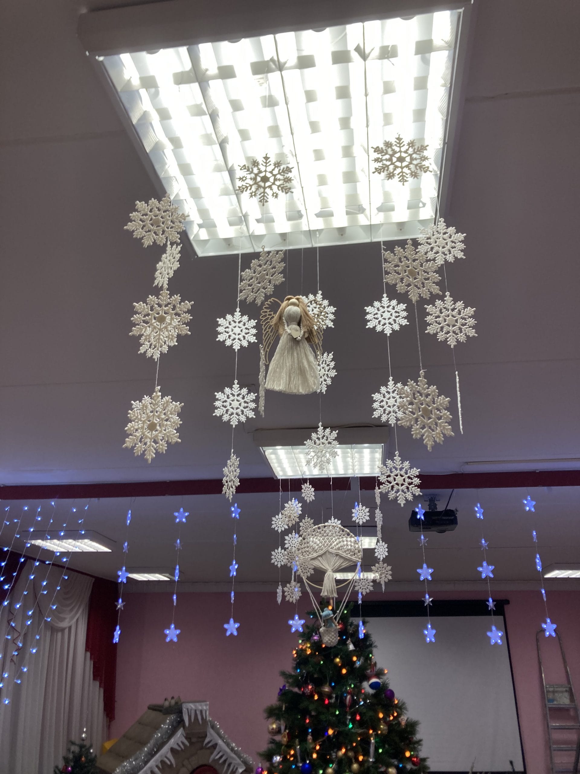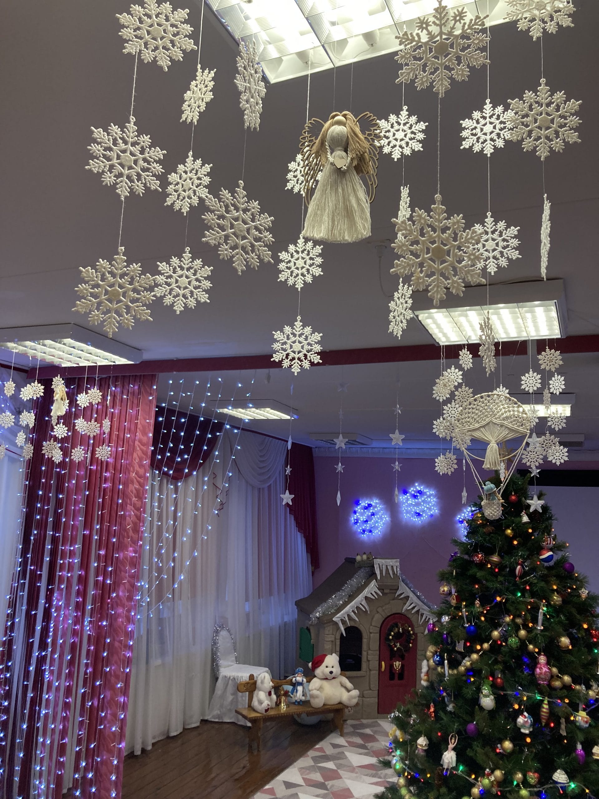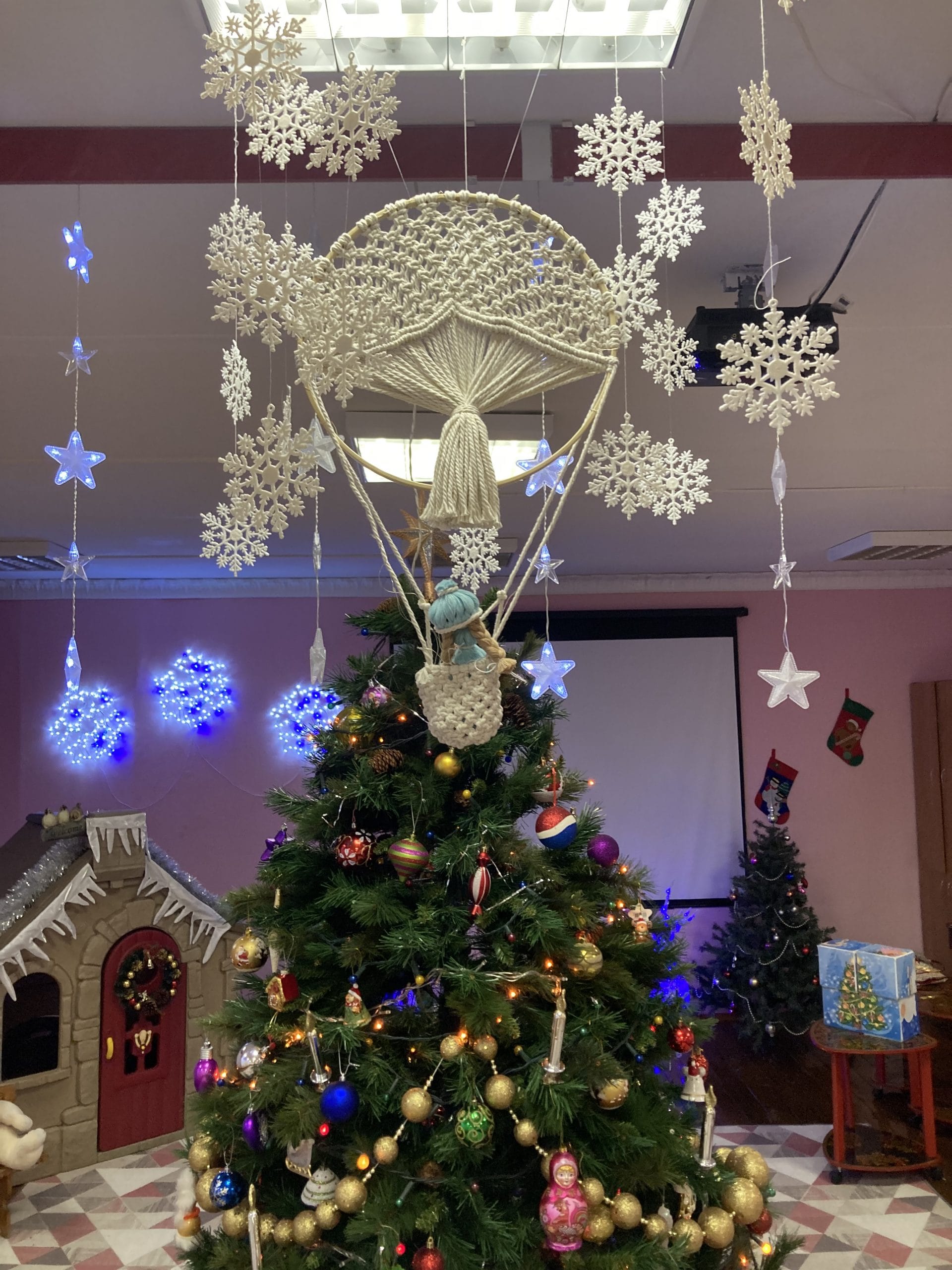 Оформление музыкального зала к Новому Году с элементами ручной работы в технике макраме